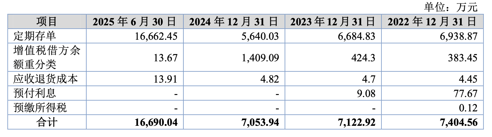 报告期内,德硕科技的资产负债率分别为67.34%、65.28%、66.66%、65.88%,长期借款从2022年的1300万元激增至2025年上半年的1.32亿元,债务压力显著;但与此同时,公司的货币资金从2022年的7938万元增长至2025年上半年的2.24亿元,并且公司报告期末账上还有高达1.67亿元的定期存单。一边是大额定期存单,一边是持续攀升的借款,这种“既要融资又要存钱”的存贷双高现象,引发了市场的关注。