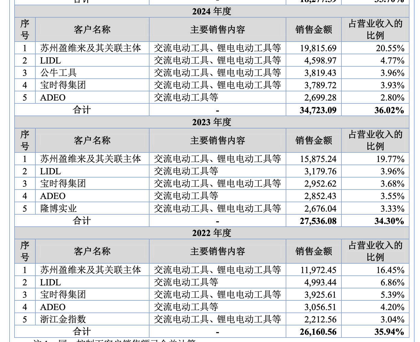 德硕科技的第一大客户是苏州盈维来及其关联主体,2022年至2024年,公司对其销售收入从约1.20亿元增长至约1.98亿元,占公司营业收入的比重从16.45%攀升至20.55%,对该单一客户的依赖程度逐年加深。