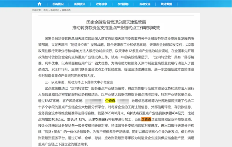 更具战略意义的突破,在于助力“银企对接”实现精准化。如为天津金融监管局提供的产业链数据支持,其价值在于将宏观的产业政策与微观的企业融资需求进行数据化链接。通过厘清重点产业链上中下游的企业图谱、竞争力分析及风险状况,企查查帮助试点银行能够“按图索骥”,将信贷资源精准滴灌至产业链关键环节的企业,从而实现发放贷款434亿元、同比增长31%的实效。这标志着其数据服务从单点企业评估,升级为产业金融的生态化赋能。