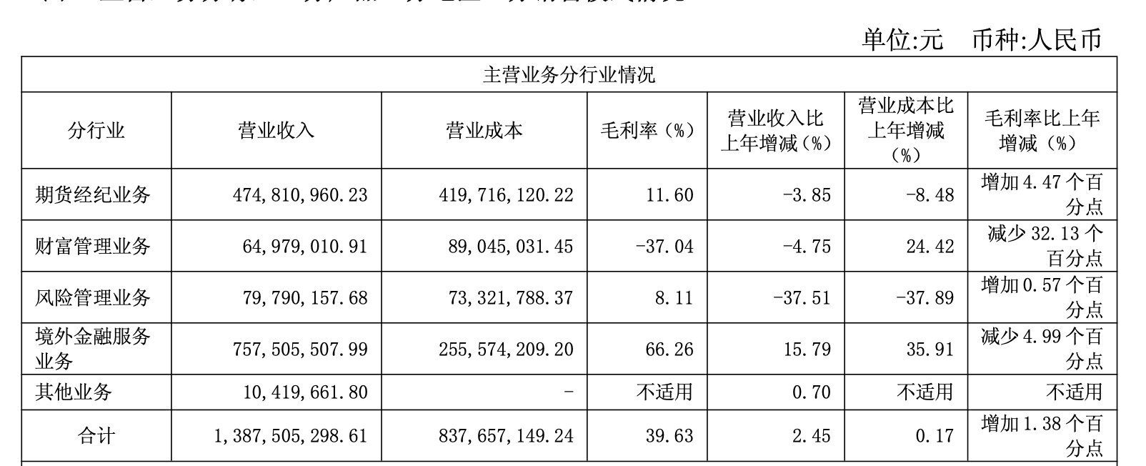 相比之下,境内传统业务的表现存在不足,期货经纪业务收入4.75亿元,同比下降3.85%;财富管理业务收入6498万元,同比下降4.75%;风险管理业务收入仅7979万元,同比大幅下降37.51%;南华基金更是全年亏损1730万元。