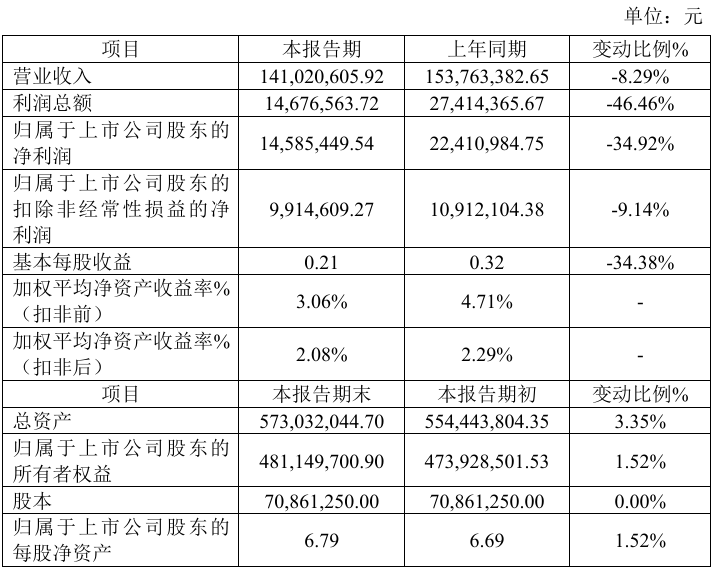 2月27日,新赣江(920367)发布公告,2025年年度业绩快报显示,公司实现营业收入约为1.41亿元,同比下降8.29%;归母净利润约为1459万元,同比下降34.92%。