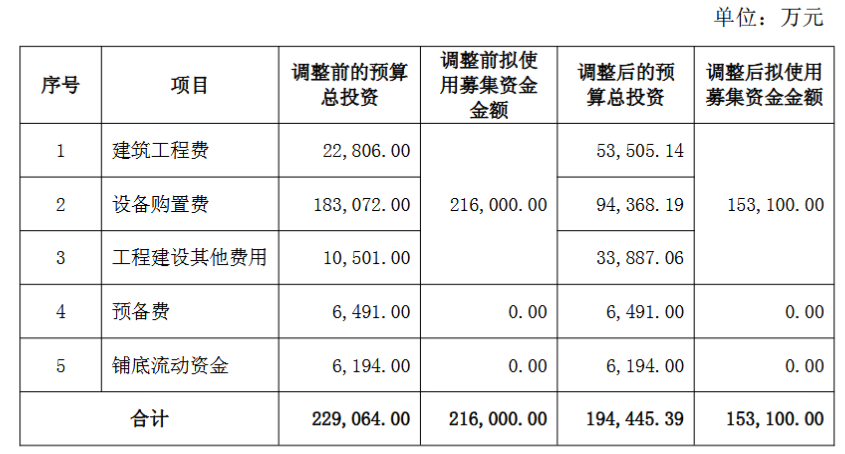公告指出,根据募投项目实施过程中出现的场地建设制约、相关基础配套设施及部分生产线的安装等影响因素,公司对“年产22万吨大型铸件精加工生产线建设项目”延期。同时,该项目总投资将由22.9亿元调降至19.4亿元。具体情况如下: