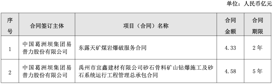 在爆破服务工程类合同中,主要包括与中国葛洲坝集团的两个合同,具体信息如下:
