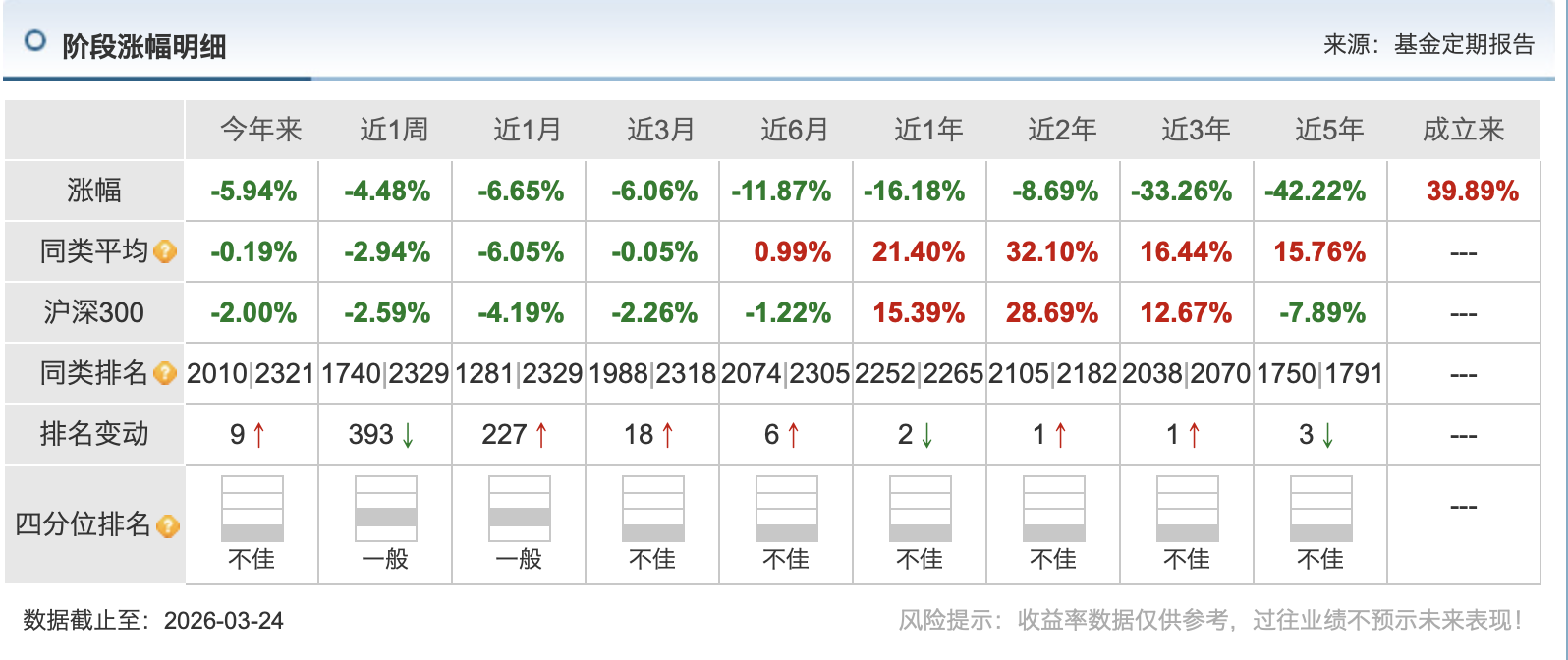 接任者何江,有着15年投研经验,现任量化投资部总监。但量化背景并未带来稳健,何江延续了“高频换仓”的操作风格:2025年下半年集中布局医药板块后遇行业回调,年底又迅速切换至汽车零部件与休闲食品,再次遭遇追高后下跌,截至2026年3月,其任职回报依然为负。